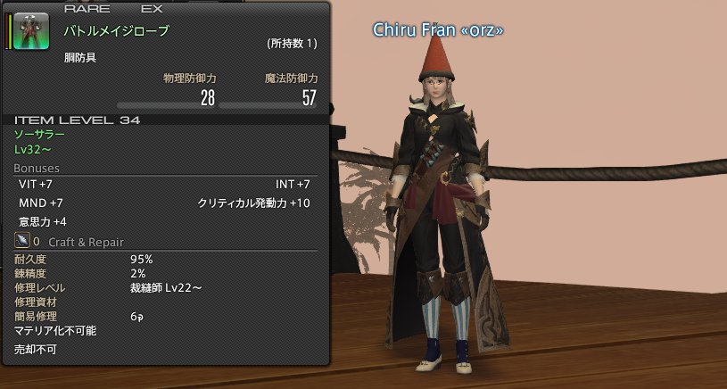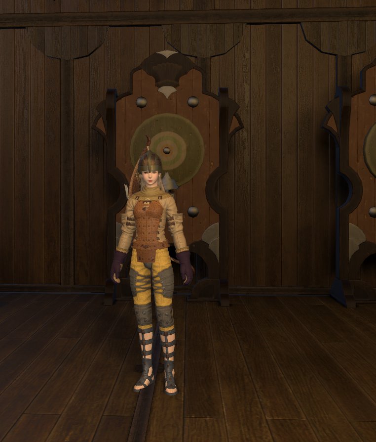 基本はセットで揃えて着るのが好きですが、低レベルの間ってどうしてもお金に余裕がないので寄せ集め品をきてダサい思い出を満喫するものだと思っているので今はそうしているだけで、別にダサいのが好きっていうわけじゃないです(