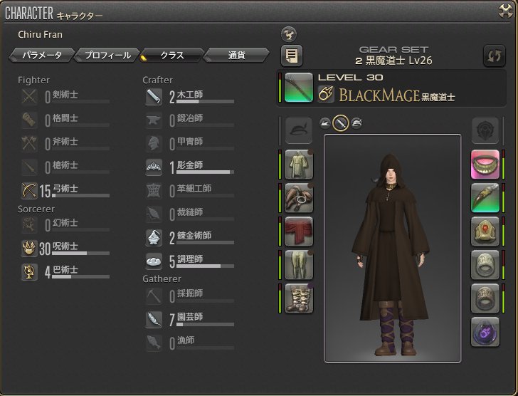 弓でグリダニア・リムサ近辺の低レベルクエやFATEでlv15まであげました。