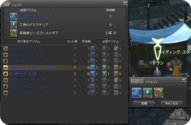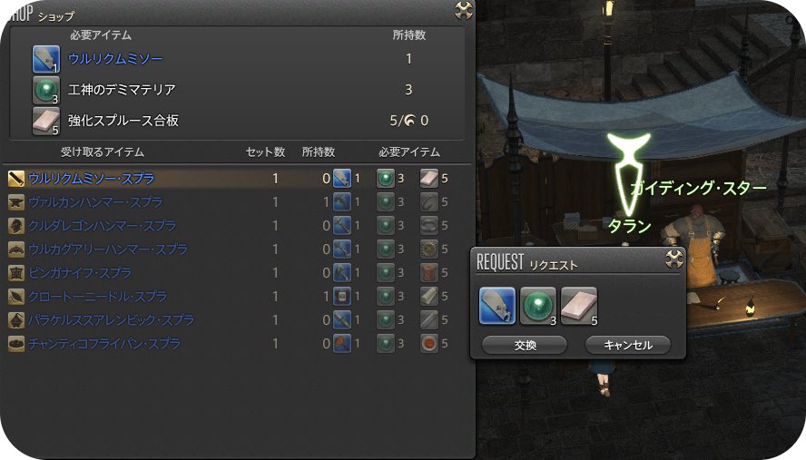 「これは前回のAF自作の経験を踏まえてアーティザン副道具をかったほうがいいのでは?」と思い最終装備の時点で副道具HQで自分の名前が入ればいい!ということで妥協し自作道具は売る、そしてNQアーティザン副道具を買う